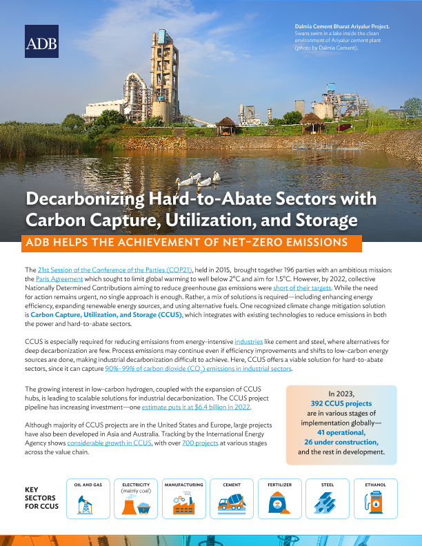 【Asian Development Bank (ADB)】【2024】Decarbonizing Hard-to-Abate Sectors with Carbon Capture, Utilization, and Storage-4页