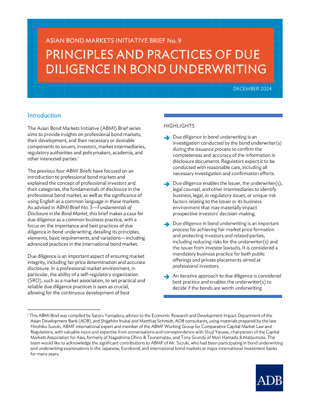 【Asian Development Bank】【202412】Principles and Practices of Due Diligence in Bond Underwriting - UNUNDERWRITING OF ENGLISH IN THE BOND MARKET-12页