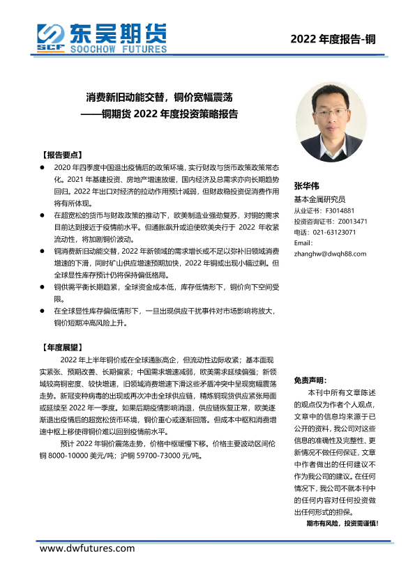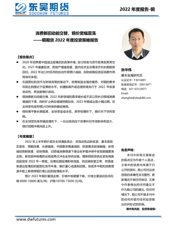 【东吴期货】【20220113】铜期货2022年度投资策略报告:消费新旧动能交替,铜价宽幅震荡-21页