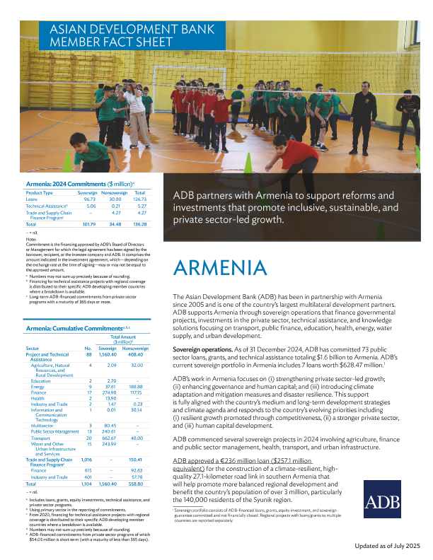 【Asian Development Bank】【202507】Asian Development Bank and Armenia Fact Sheet-4页