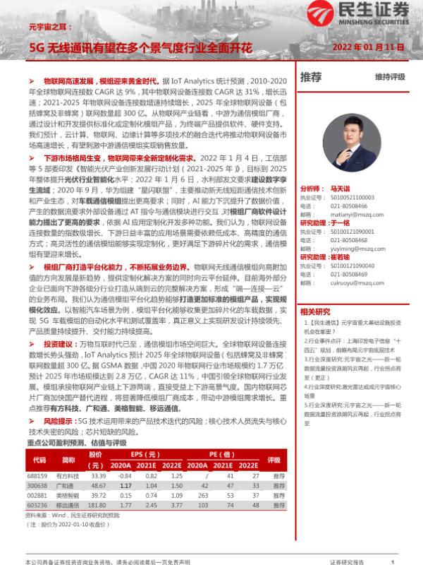 【民生证券】【20220111】通信行业元宇宙之耳:5G无线通讯有望在多个景气度行业全面开花-32页