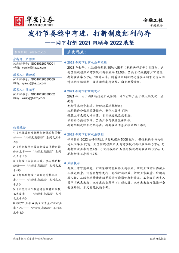 【华安证券】【20220110】网下打新2021回顾与2022展望:发行节奏稳中有进,打新制度红利尚存-21页