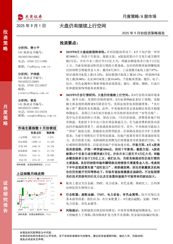 【东莞证券】【20250901】2025年9月份A股投资策略报告:大盘仍有继续上行空间-15页