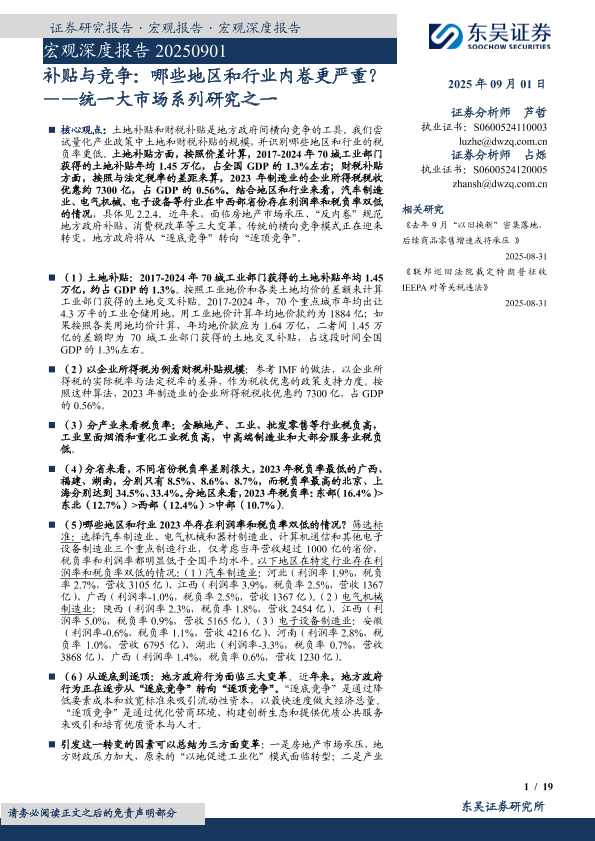 【东吴证券】【20250901】补贴与竞争:哪些地区和行业内卷更严重?-统一大市场系列研究之一-19页