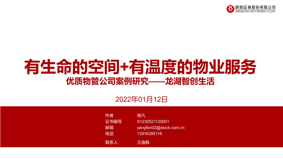 【浙商证券】【20220112】物业服务行业优质物管公司案例研究:龙湖智创生活,有生命的空间+有温度的服务-28页