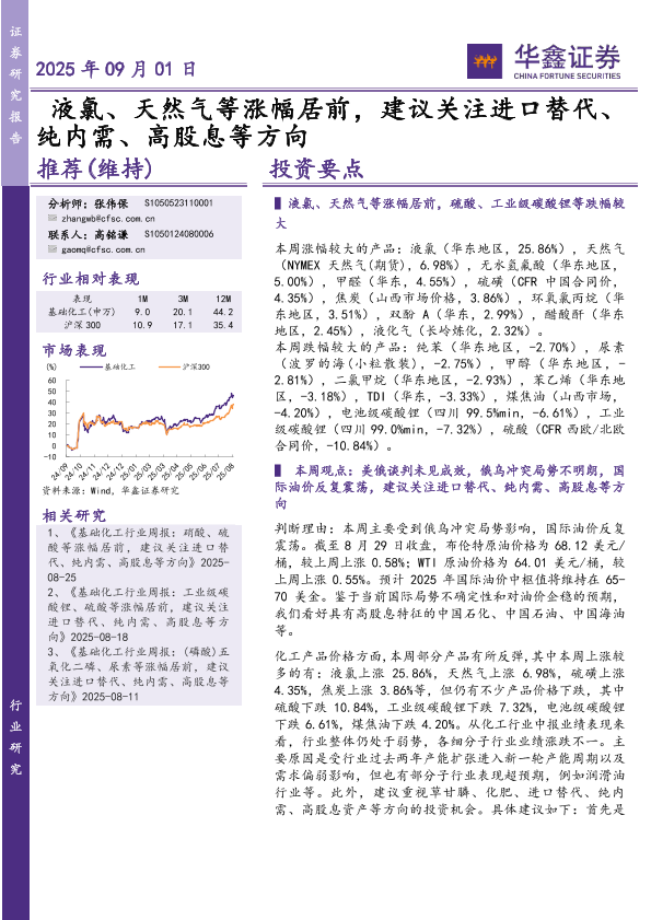 【华鑫证券】【20250901】液氯、天然气等涨幅居前,建议关注进口替代、纯内需、高股息等方向-33页