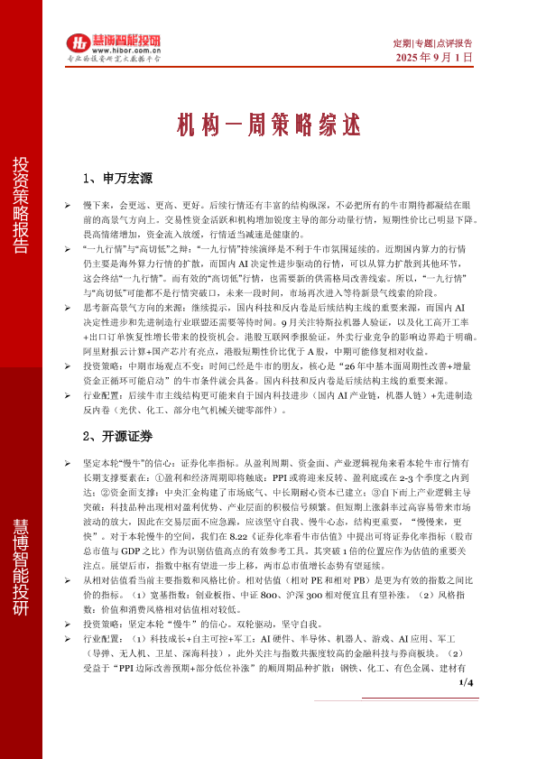 【慧博智能投研】【20250901】机构一周策略综述-4页