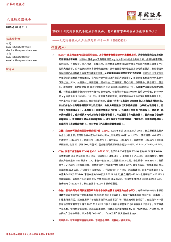 【华源证券】【20250901】2025H1北交所多数汽车股成长性优异,其中精密零部件企业多数净利率上升-18页
