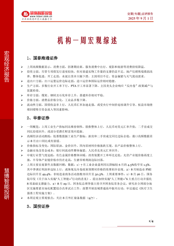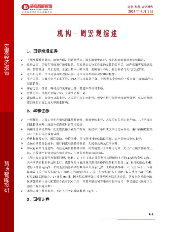 【慧博智能投研】【20250901】机构一周宏观综述-4页