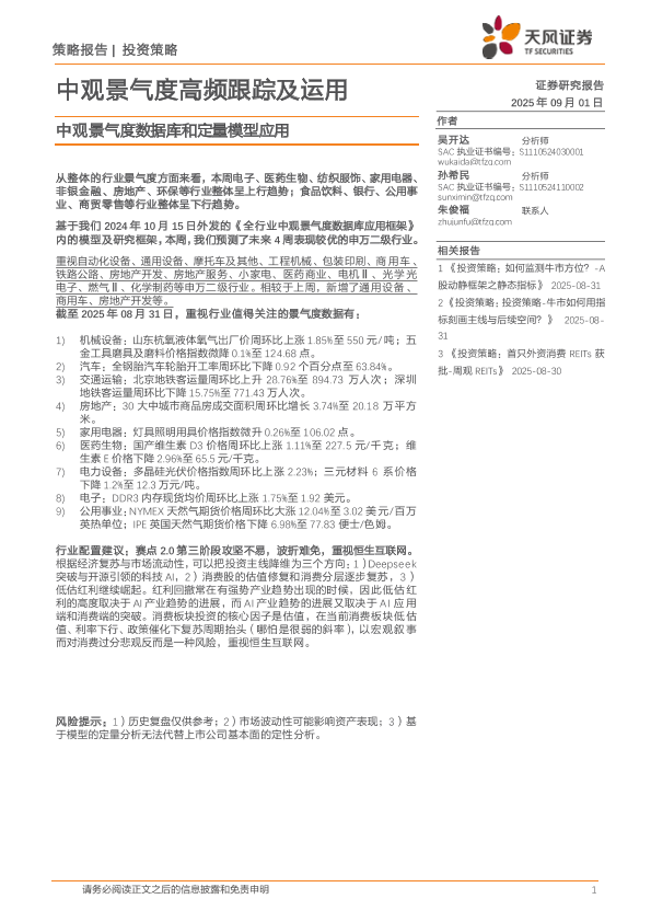 【天风证券】【20250901】中观景气度高频跟踪及运用-中观景气度数据库和定量模型应用-18页
