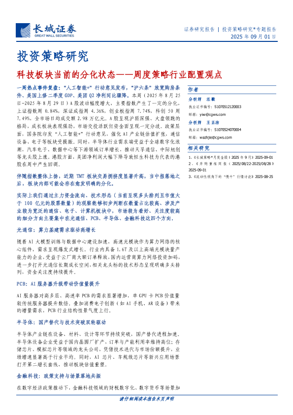 【长城证券】【20250901】科技板块当前的分化状态-周度策略行业配置观点-9页