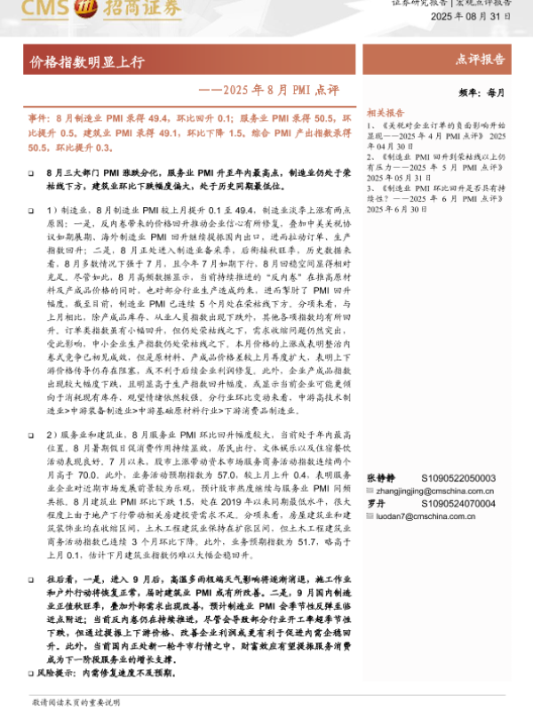 【海通证券】【20250831】2025年8月PMI点评-价格指数明显上行-6页
