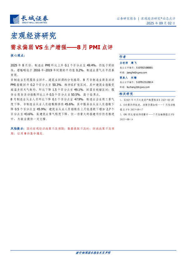 【分析师蒋飞】【20250902】需求偏弱VS生产增强-8月PMI点评-7页