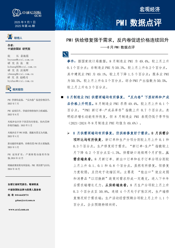 【中诚信国际】【202508】PMI供给修复强于需求,反内卷促进价格连续回升-8页