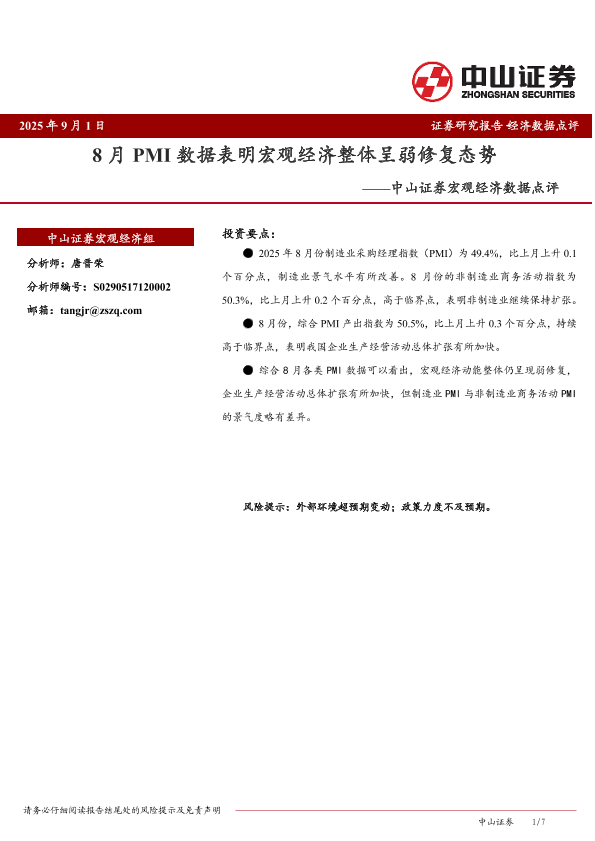 【唐晋荣】【20250901】8月PMI数据表明宏观经济整体呈弱修复态势-7页