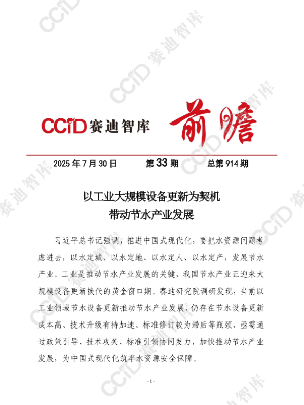【CCiD赛迪智库】【20250730】以工业大规模设备更新为契机带动节水产业发展-8页