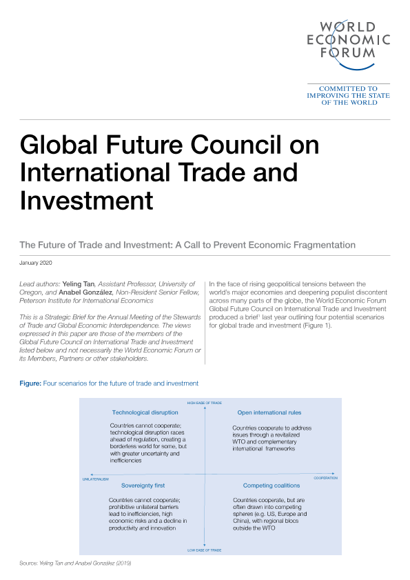 【Yeling Tan&Assistant Professor&University of Oregon&Anabel Gonzalez&Non-Resident Senior Fellow&Peterson Institute for International Economics】【202001】The Future of Trade and Investment A Call to Prevent Economic Fragmentation-4页