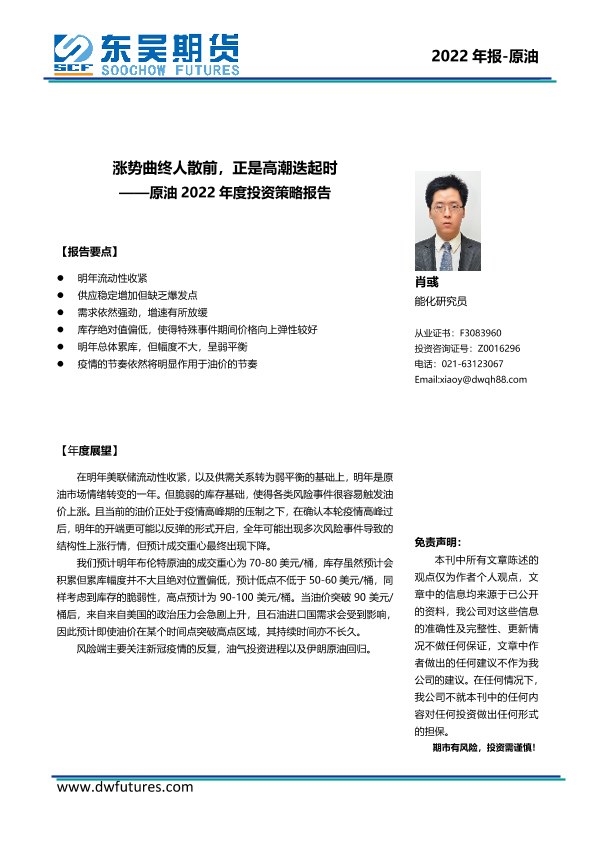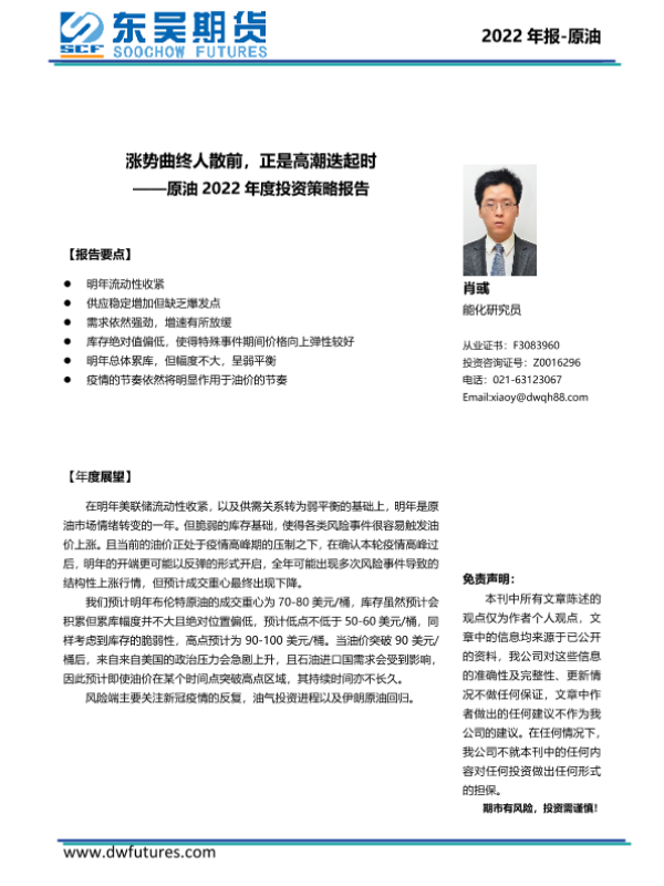 【东吴期货】【20220113】原油2022年度投资策略报告:涨势曲终人散前,正是高潮迭起时-32页