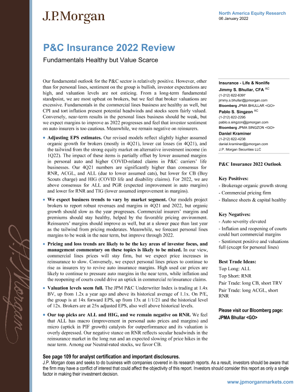 【J.P. Morgan】【20220106】P&C Insurance 2022 Review Fundamentals Healthy but Value Scarce-113页