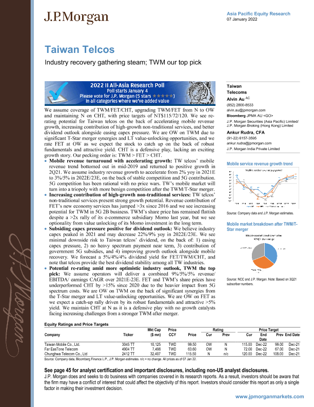 【J.P. Morgan】【20220107】亚太地区电信行业:工业复苏蓄势待发-50页