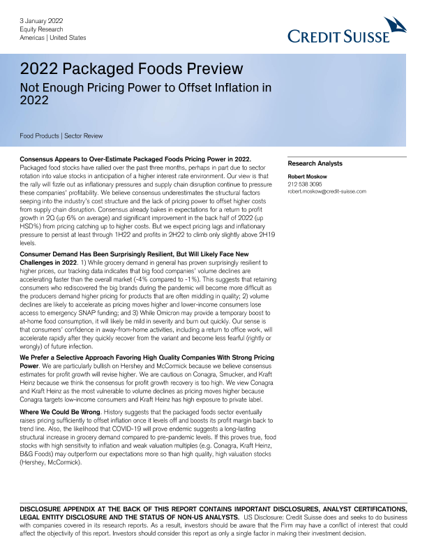 【瑞信】【20220103】2022年包装食品预览:定价能力不足,无法抵消2022年的通胀-68页