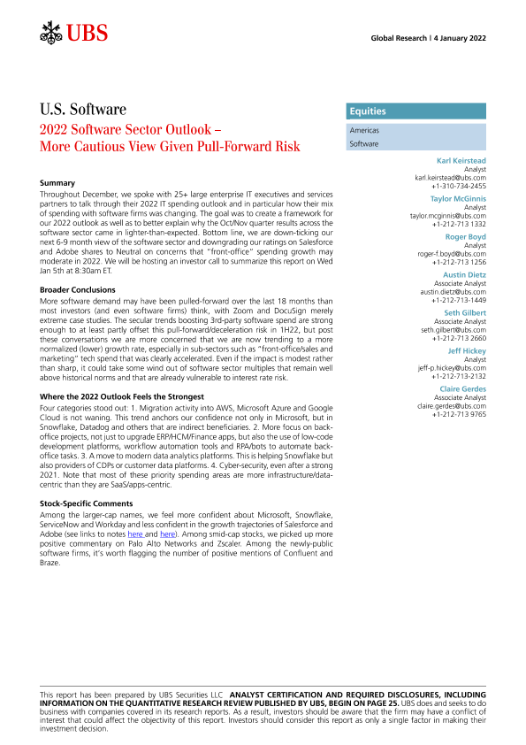 【瑞银】【20220104】2022年软件行业展望:考虑到远期风险,观点更加谨慎-33页