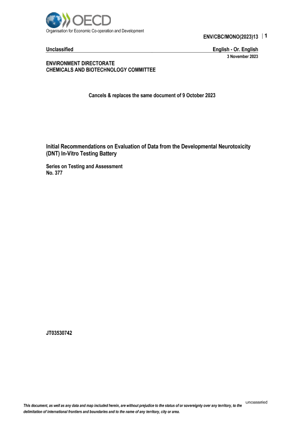 【OECD】【20231103】Initial Recommendations on Evaluation of Data from the Developmental Neurotoxicity (DNT) In-Vitro Testing Battery-404页