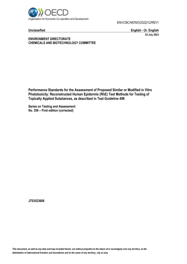 【OECD】【20230724】Performance Standards for the Assessment of Proposed Similar or Modified in Vitro Phototoxicity Reconstructed Human Epidermis (RhE) Test Methods for Testing of Topically Applied Substances, as described in Test Guideline 498-24页