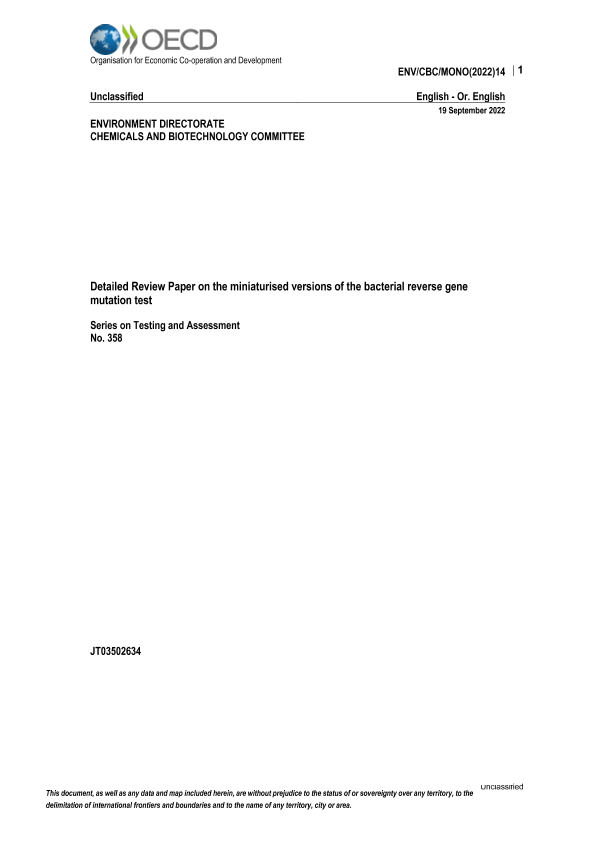 【OECD】【2022】Detailed Review Paper on the miniaturised versions of the bacterial reverse gene mutation test-170页