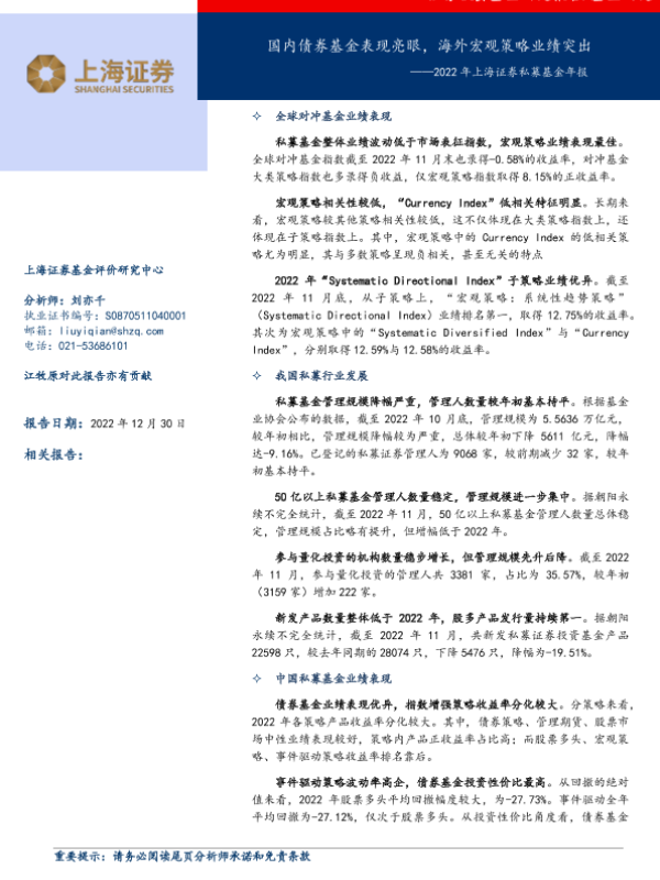 【上海证券】【20221230】2022年上海证券私募基金年报:国内债券基金表现亮眼,海外宏观策略业绩突出-33页