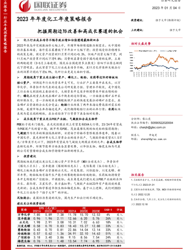 【国联证券】【20230104】2023年年度化工行业年度策略报告:把握周期边际改善和高成长赛道的机会-29页