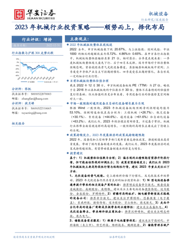 【华安证券】【20221231】2023年机械行业投资策略:顺势而上,择优布局-31页