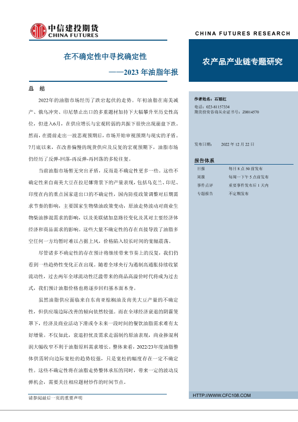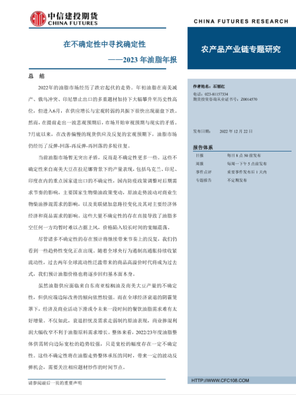 【中信建投期货】【20221222】2023年油脂年报:在不确定性中寻找确定性-40页