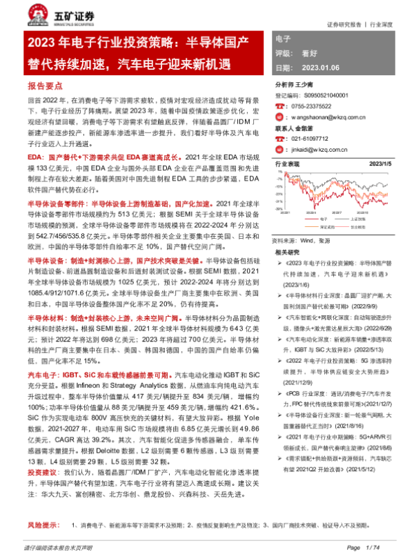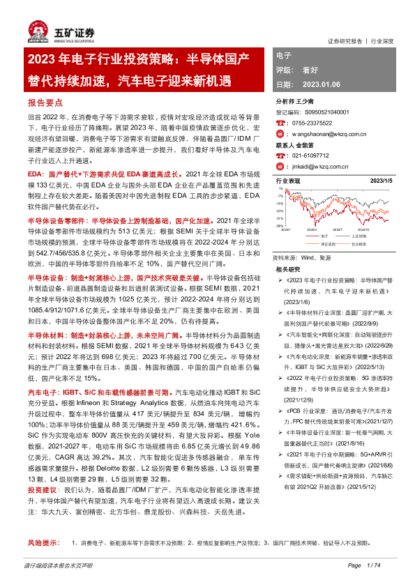 【五矿证券】【20230106】2023年电子行业投资策略:半导体国产替代持续加速,汽车电子迎来新机遇-74页