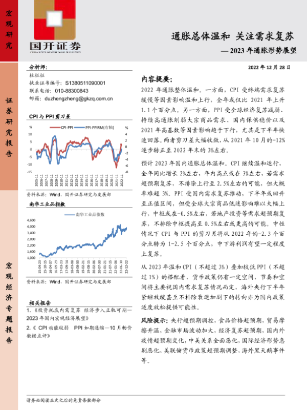 【国开证券】【20221228】2023年通胀形势展望:通胀整体温和,关注需求复苏-24页