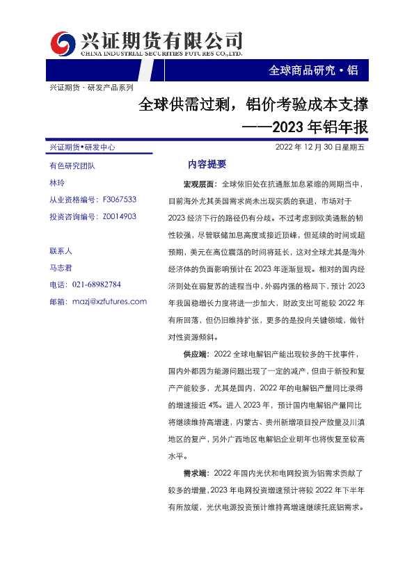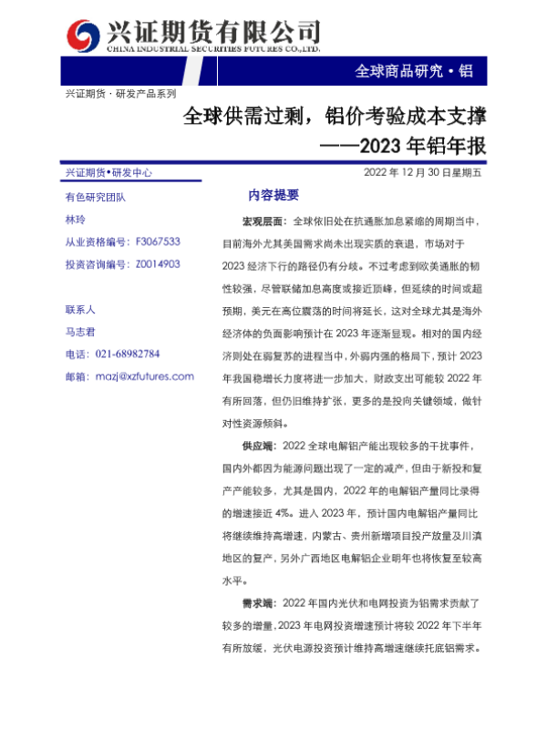 【兴证期货】【20221230】2023年铝年报:全球供需过剩,铝价考验成本支撑-26页