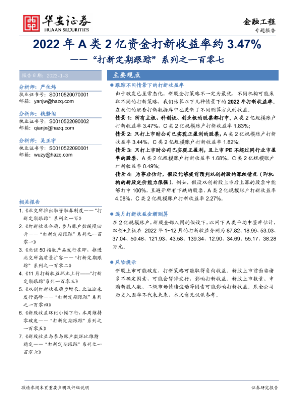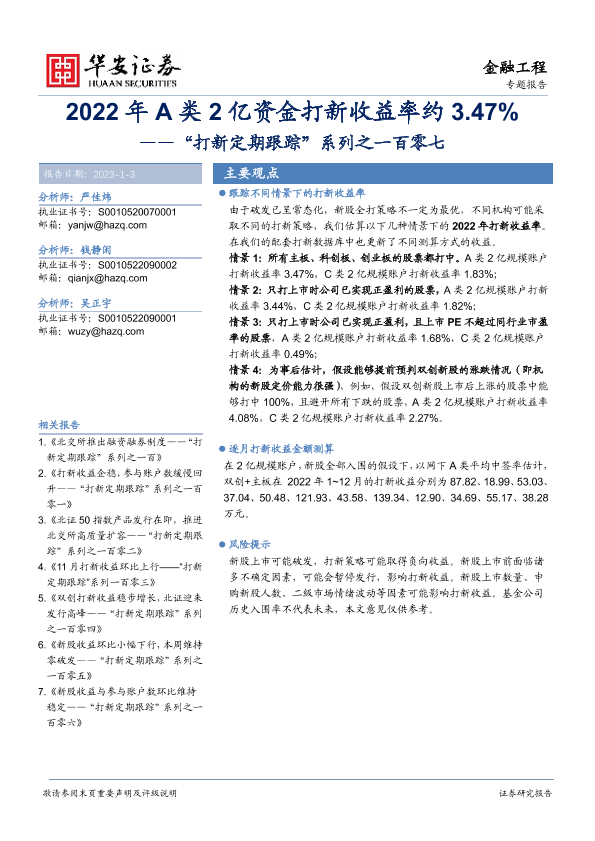 【华安证券】【20230103】“打新定期跟踪”系列之一百零七:2022年A类2亿资金打新收益率约3.47%-20页