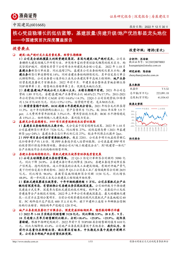 【浙商证券】【20221230】中国建筑首次深度覆盖报告:核心受益稳增长的低估蓝筹,基建放量 房建升级 地产优胜彰显龙头地位-53页