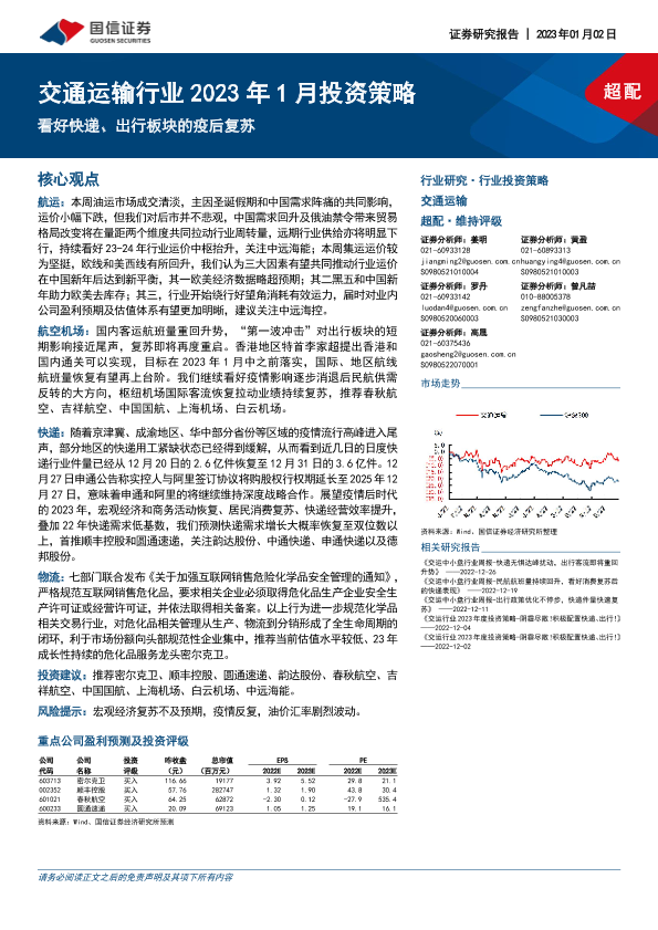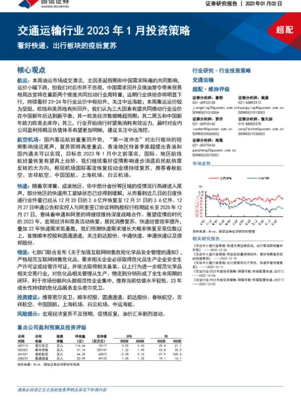 【国信证券】【20230102】交通运输行业2023年1月投资策略:看好快递、出行板块的疫后复苏-14页