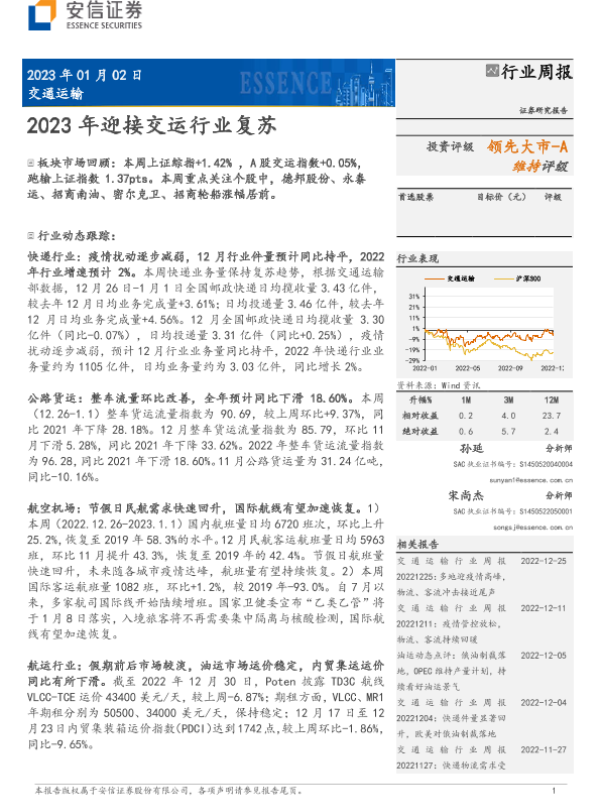 【安信证券】【20230102】交通运输行业周报:2023年迎接交运行业复苏-21页