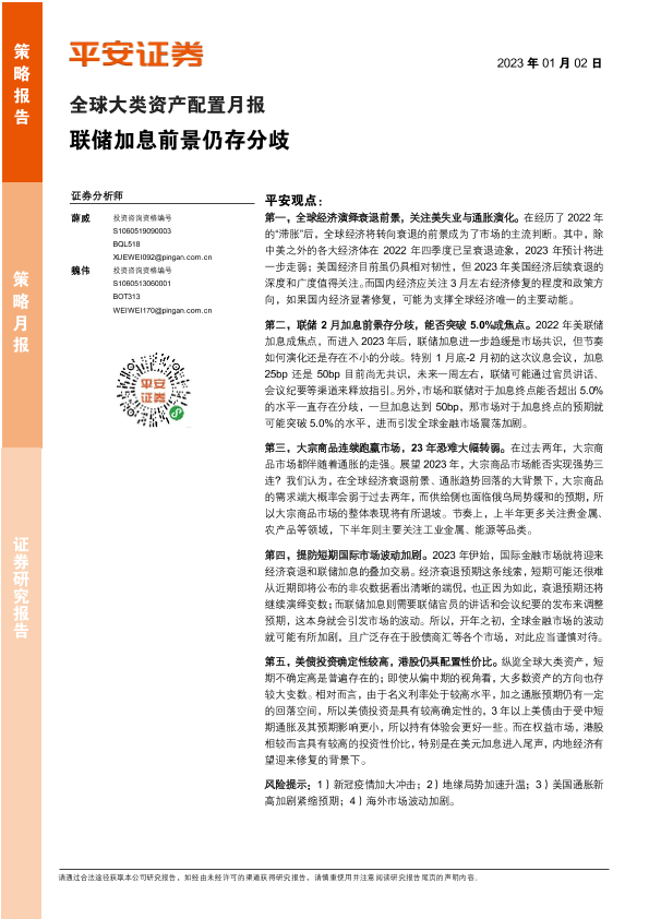 【平安证券】【20230102】全球大类资产配置月报:联储加息前景仍存分歧-15页