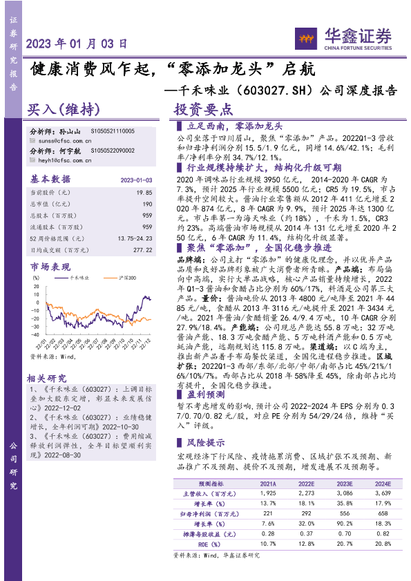 健康消费 千禾味业 市场分析 调味品行业 零添加