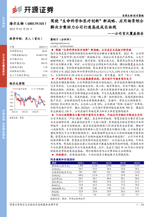【开源证券】【20230103】公司首次覆盖报告:围绕“生命科学和医疗创新”新战略,应用场景综合解决方案助力公司打造高速成长曲线-38页