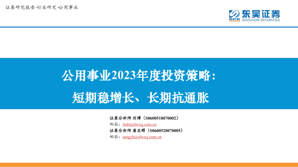 【东吴证券】【20230105】公用事业行业2023年度投资策略:短期稳增长、长期抗通胀-30页