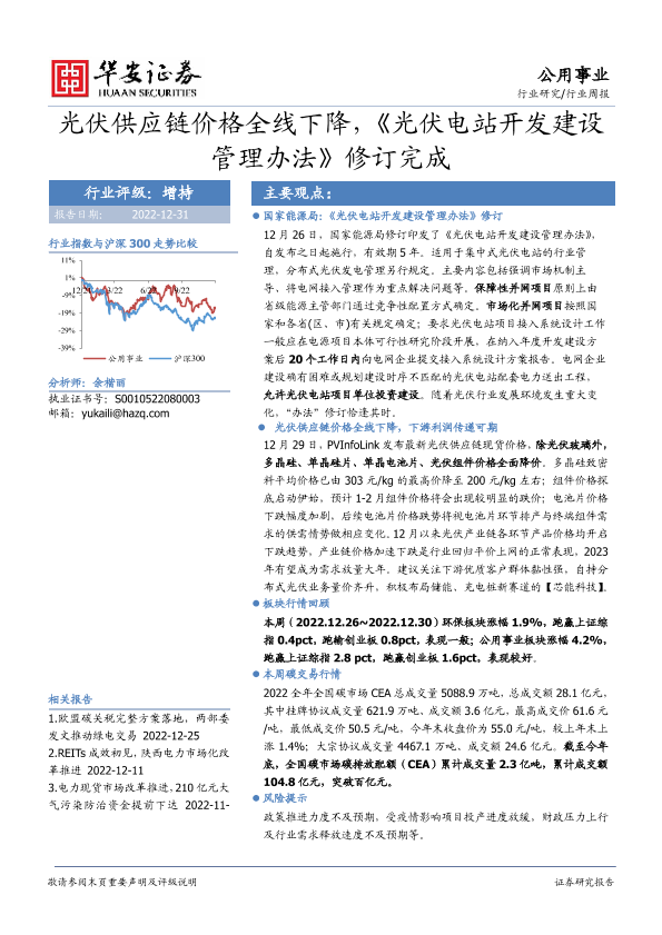 【华安证券】【20221231】公用事业行业周报:光伏供应链价格全线下降,《光伏电站开发建设管理办法》修订完成-18页