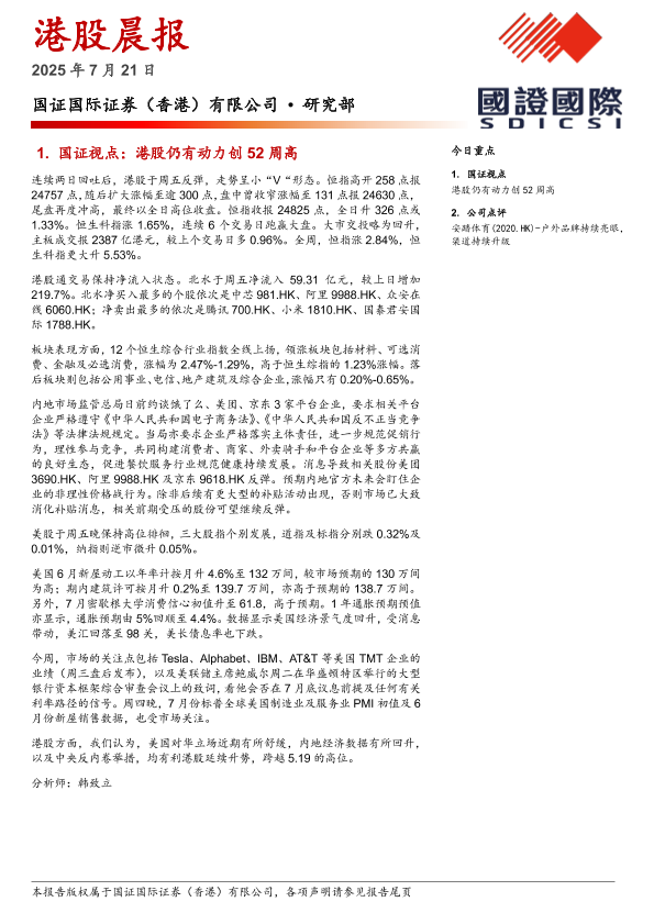 政策监管 恒生指数 企业动态 行业表现 港股市场