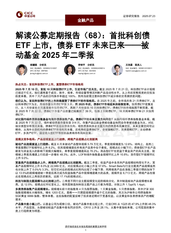 【中国国际金融】【20250723】解读公募定期报告(68):首批科创债ETF上市,债券ETF未来已来——被动基金2025年二季报-20页