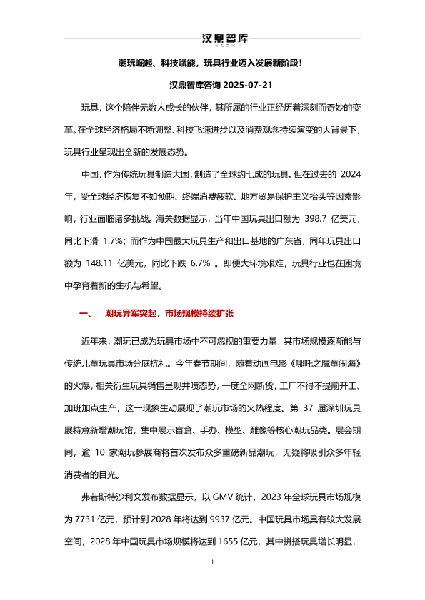【汉鼎智库咨询】【20250721】潮玩崛起、科技赋能,玩具行业迈入发展新阶段!-4页