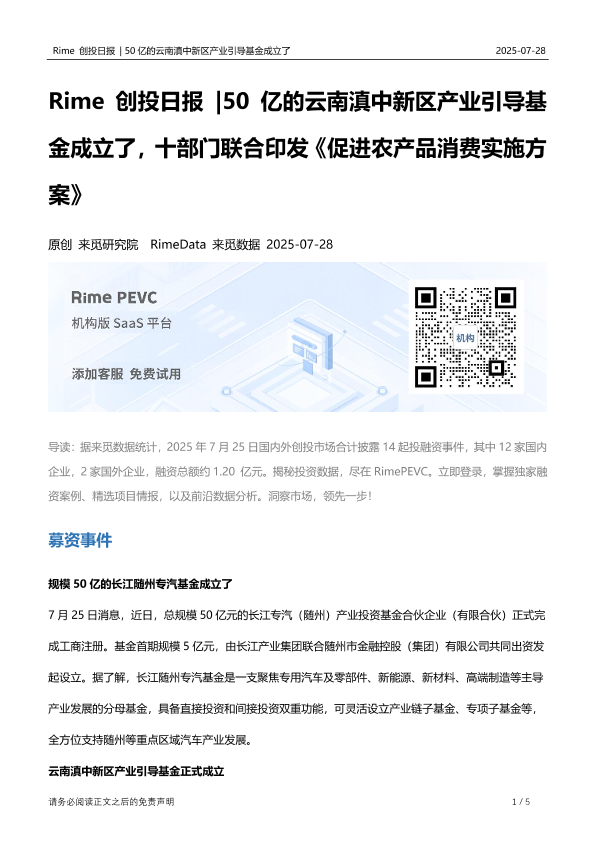【来觅研究院】【20250728】Rime创投日报|50亿的云南滇中新区产业引导基金成立了-5页