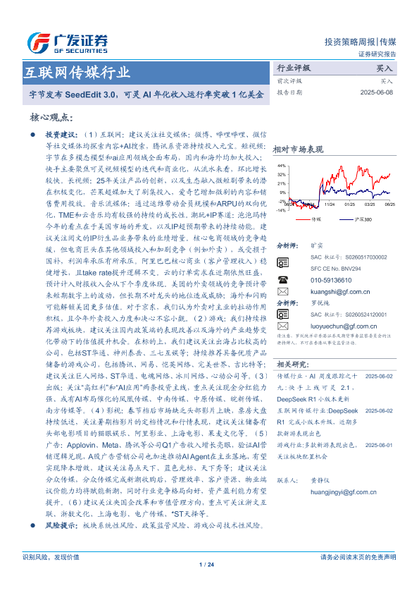 【广发证券】【20250608】字节发布SeedEdit 3.0,可灵AI年化收入运行率突破1亿美金-24页